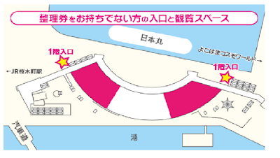 As áreas em rosa são destinadas aos visitantes sem tickets. Tem capacidade para aproximadamente mil espectadores, porém se atingir a capacidade máxima será fechada. Portanto, tente chegar cedo =)