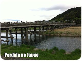| Ponte Togetsukyo e ao fundo a bela montanha |