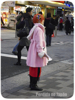 Agora uma curiosidade. Já ouviram falar sobre os “Maid Cafes”? Na verdade são restaurantes com o tema cosplay onde as garçonetes vestem trajes típicos de empregadas francesas. Antigamente, era freqüentado somente por homens (nem preciso dizer o motivo né), mas hoje já é visitado por mulheres e até casais, curiosos para conhecer essa atração. Lá dentro não pode tirar fotos, mas se o cliente quiser pode desembolsar uma taxa extra para levar consigo uma fotografia tirada ao lado de uma “empregadinha”. Ela ainda decora o mimo para você com coraçõese muitos beijinhos! Só aqui no Japão mesmo!