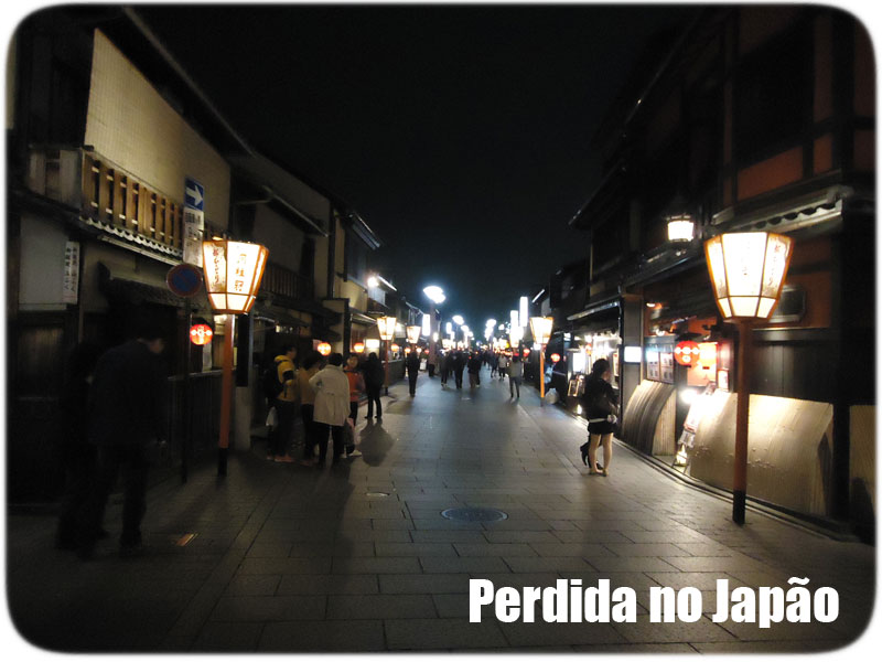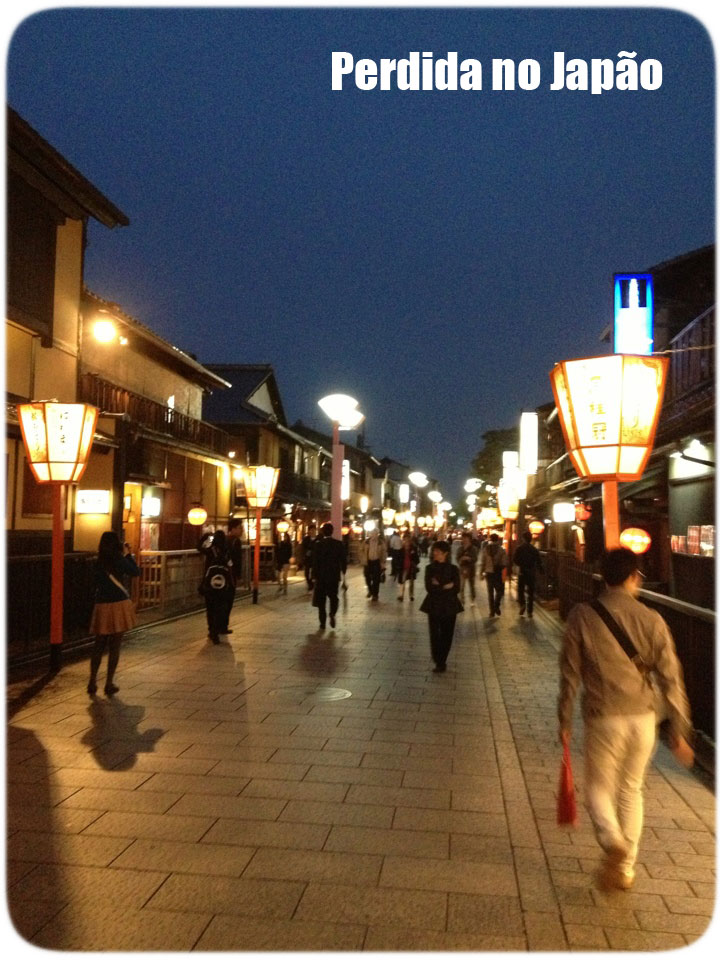 o bairro de Gion, em Kyoto, é muito conhecido por ser o distrito das gueixas (em japonês 芸者). E também muito disputado pelos turistas que ficam horas e horas esperando elas aparecerem para logo sacarem suas câmeras e tirar uma alegre fotinho. Não vou negar, também fiz isso (risos). Quase cai, me esfolei e fui atropelada, mas só consegui uma imagem borrada. Uma pena! Mas ficará a recordação.