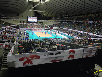 Nesse domingo, fui assistir o jogo de vôlei pela FIVB Volleyball Worlds Cup 2011 no Yoyogi National Stadium em Tokyo. Bem .. o jogo não seria nada fácil já que o adversário seria o Japão, ou seja, os donos da casa. Não vou negar, também gosto do time japonês, assistí todos os jogos pela TV japonesa. Seus jogadores são verdadeiros ídolos aqui, especialmente o Shimizu.